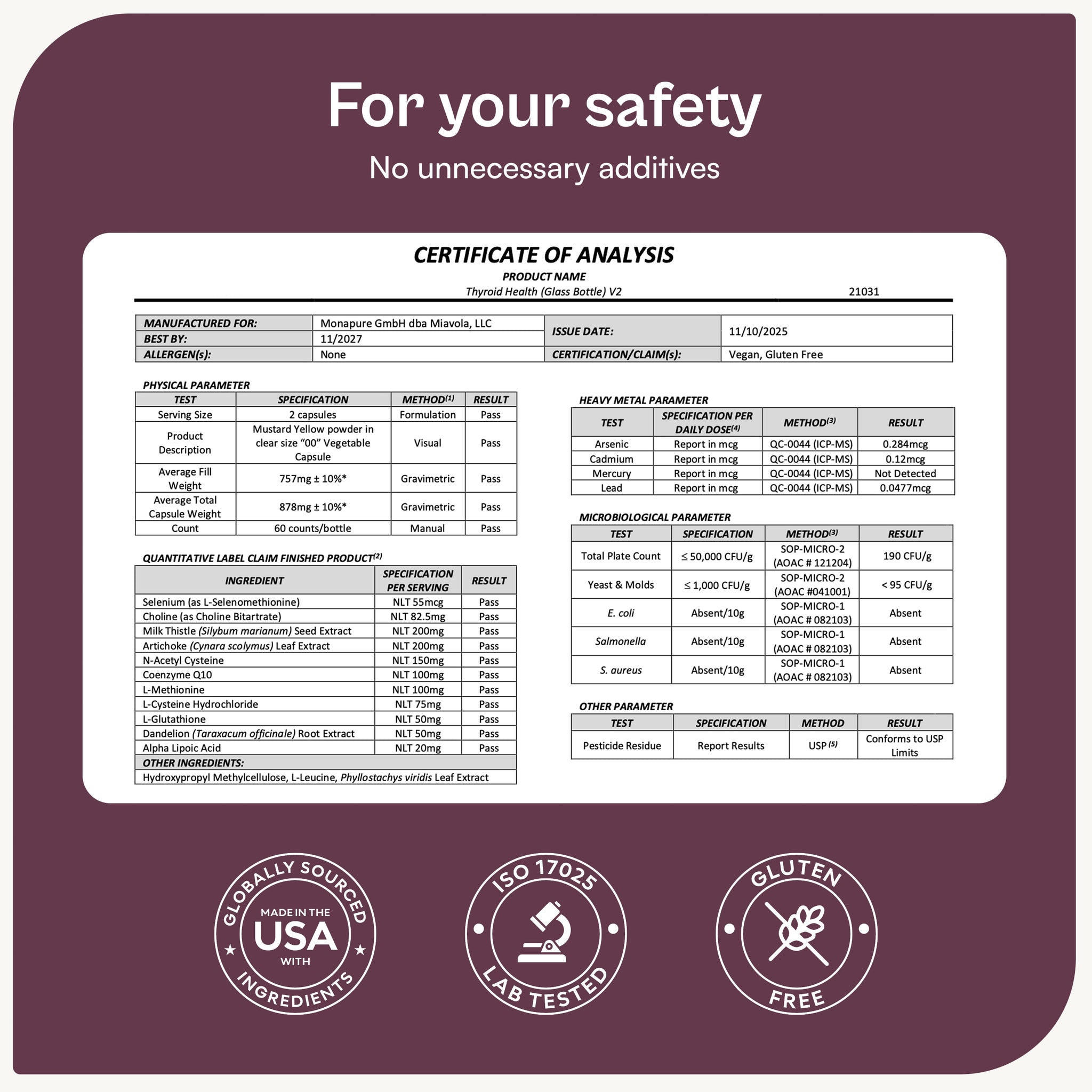 Conversol is produced in the US under the strictest quality standards and is also regularly tested for contaminants by independent laboratories.